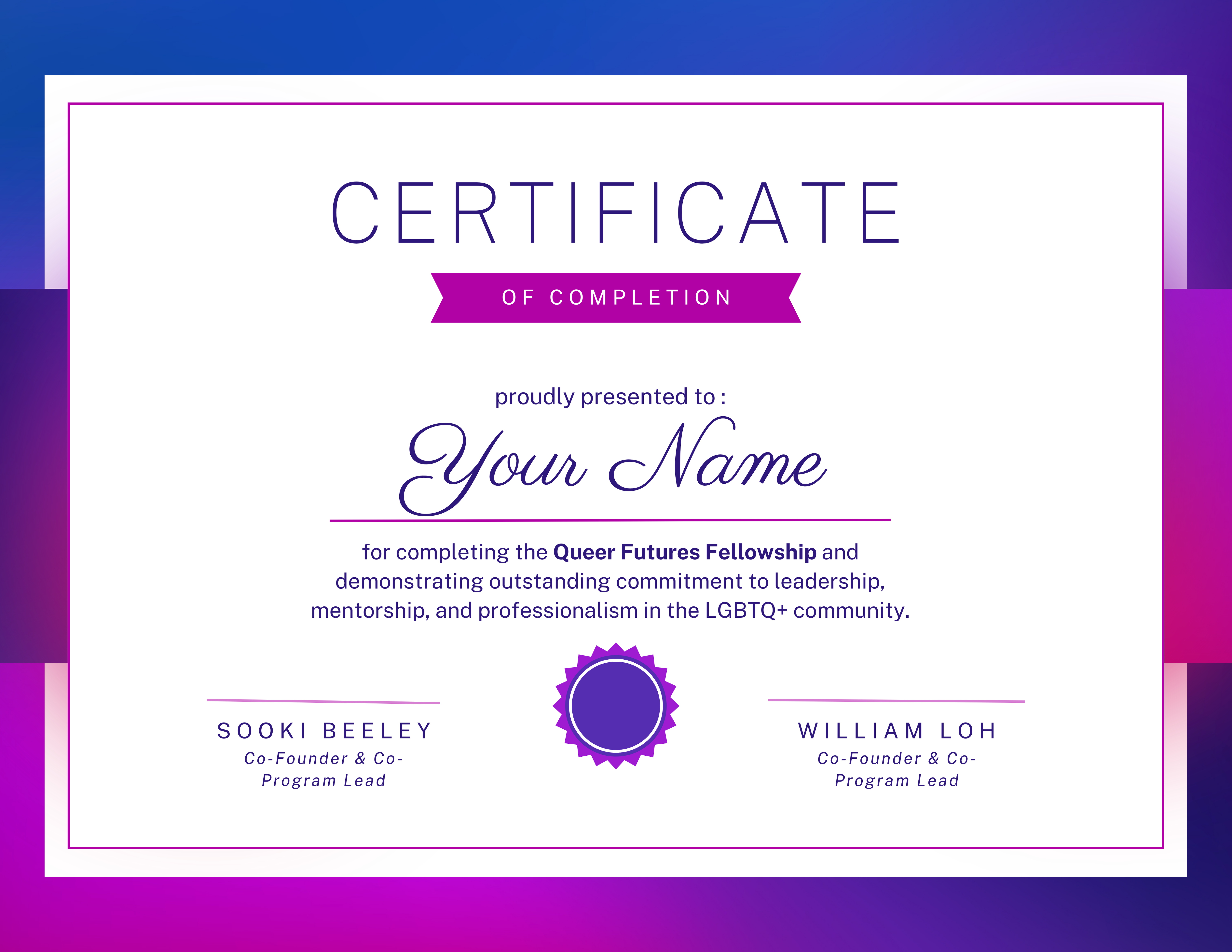 Earn a Certificate of Fellowship Completion recognizing your leadership, mentorship, and professional development in the LGBTQ+ community.