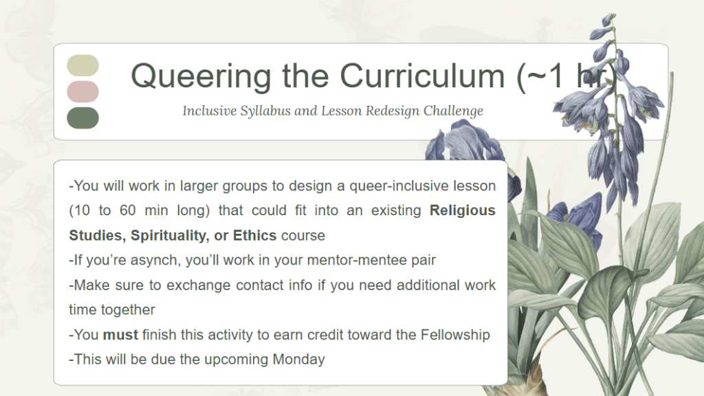 — Live Session: a themed workshop focused on professional skills, queer history, creativity, or community leadership.