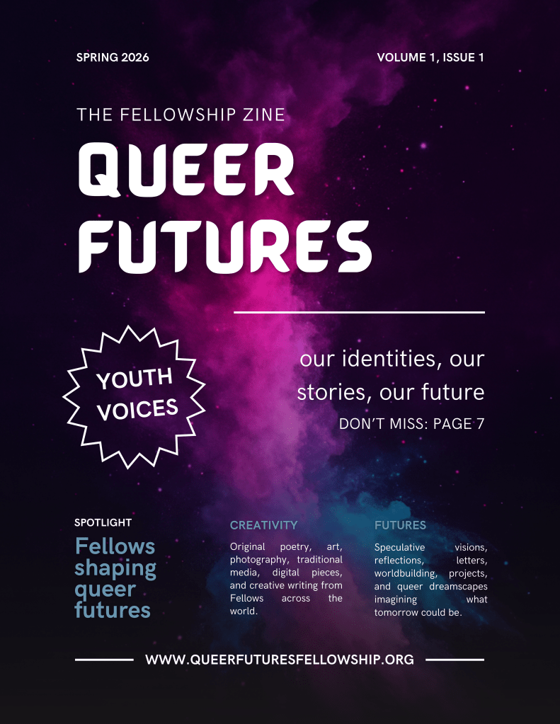 Submit original work to the Queer Futures Zine, a collaborative showcase of Fellow’s voices, with opportunities for recognition and awards.